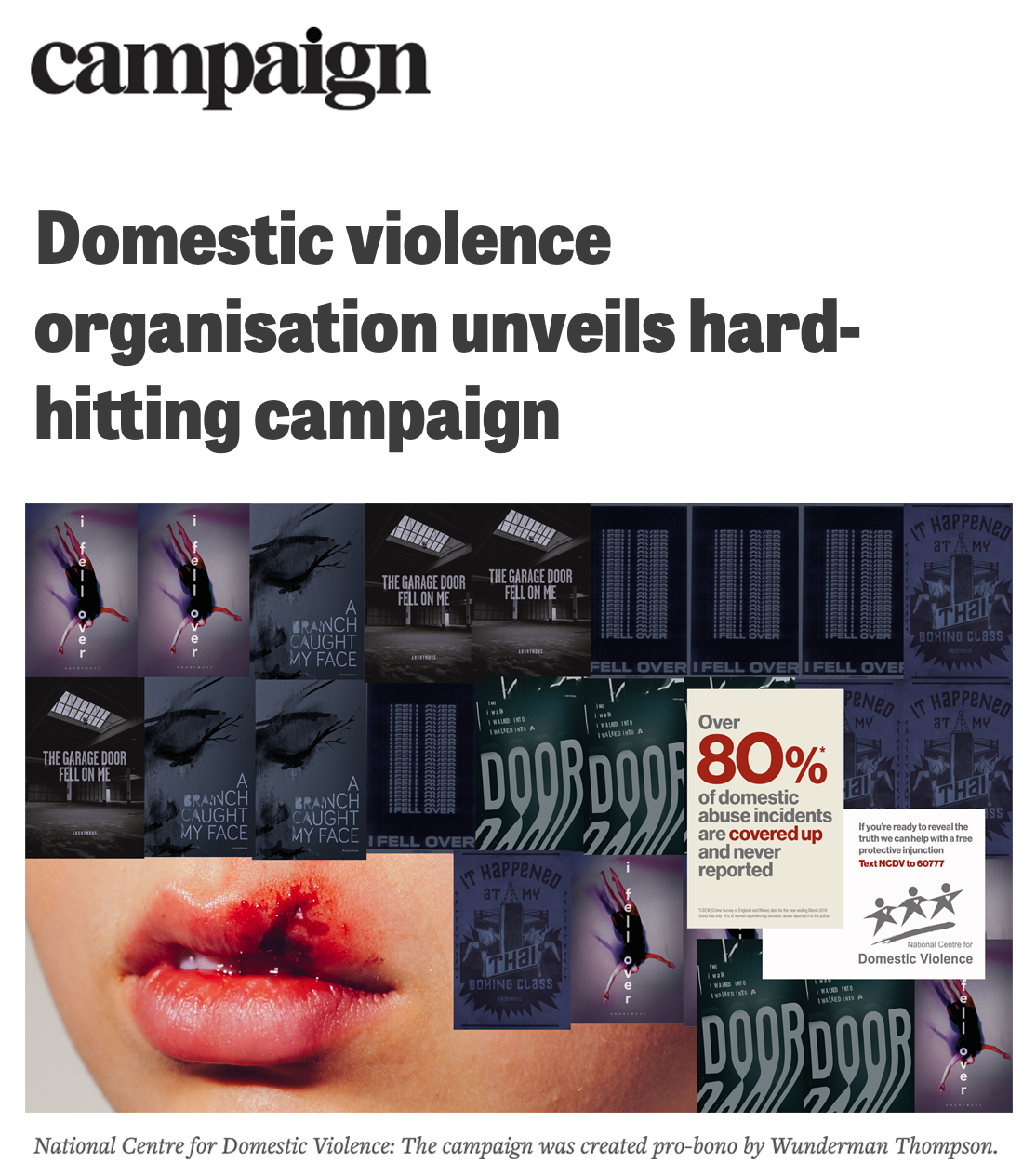 The coronavirus ’lock-down’ has resulted in domestic abuse incidents increasing by 49% in the UK. As we finished off on a new campaign to address that, Shots asked me to talk about the previous, award-winning campaign we created for NCDV. Full article here.