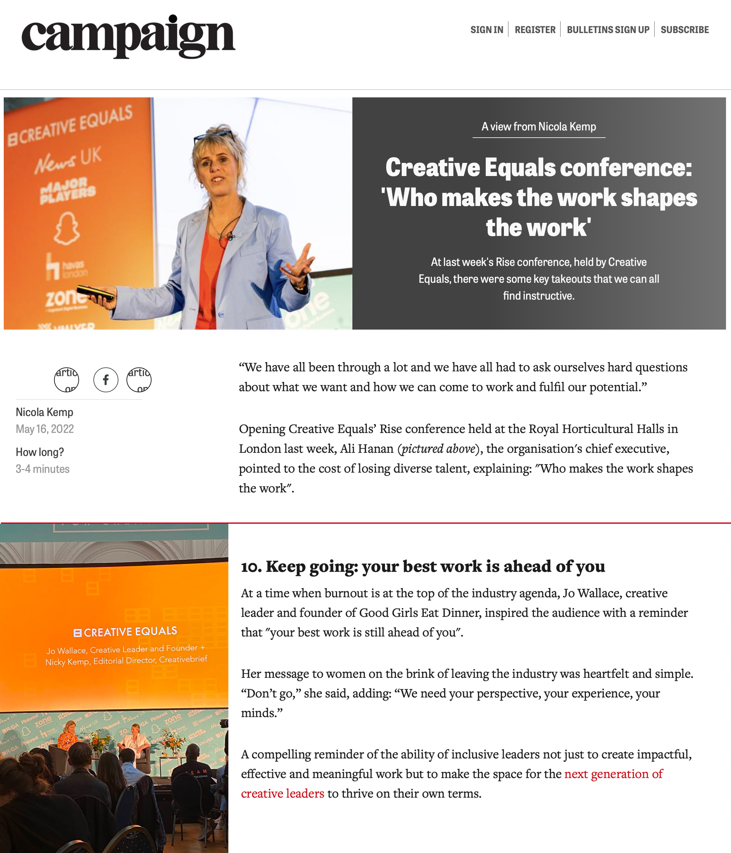 I was listed amongst Campaign & Creative Equals’ Female Future Leaders.